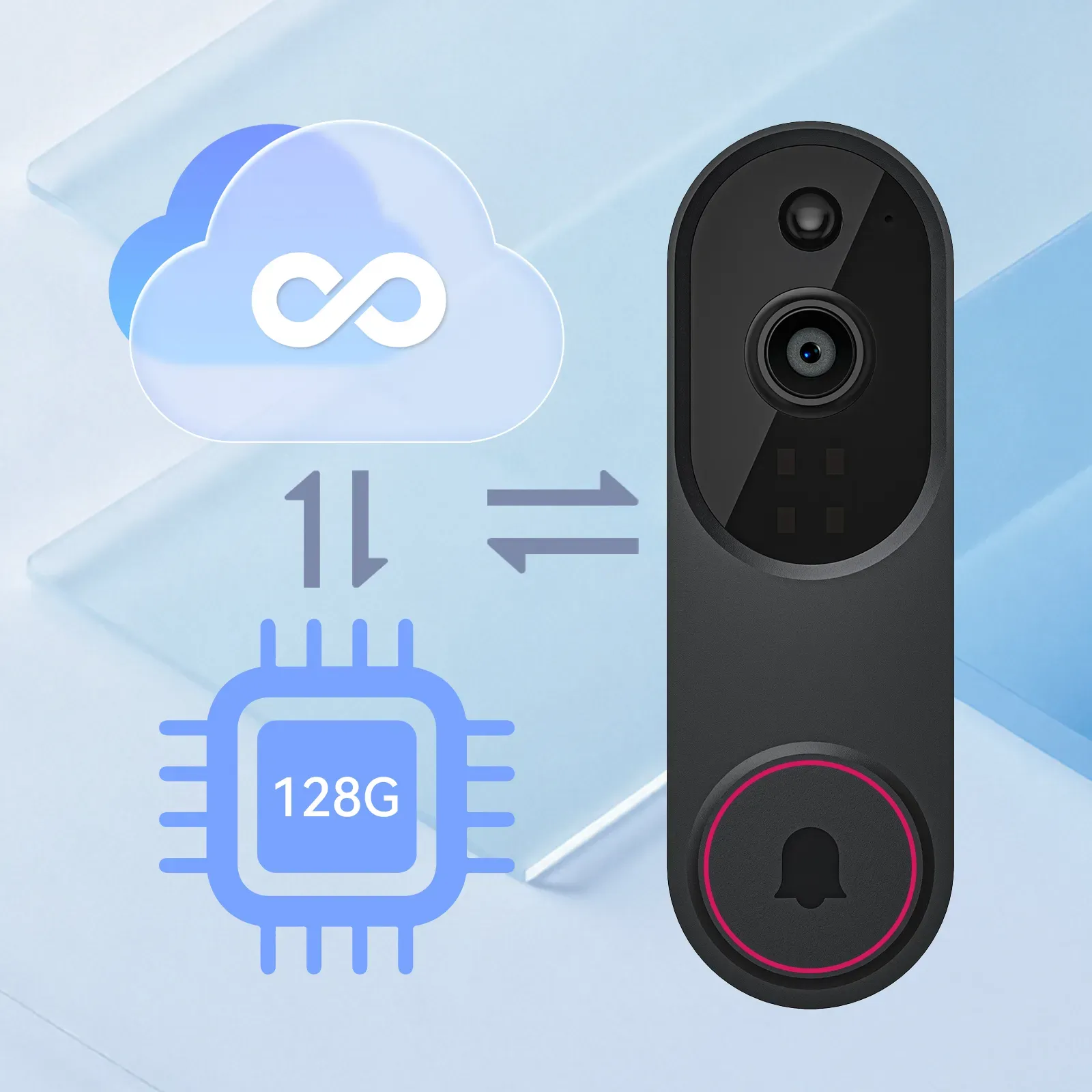 Lumivo doorbell's cloud storage system provides ample 128GB of space for all your footage. All of it is secured with military-grade AES 128 encryption, giving you peace of mind knowing your video data is protected and accessible only by you.